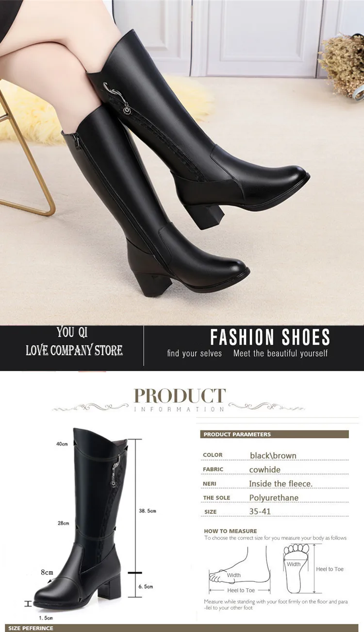 Женские высокие сапоги AIYUQI из натуральной кожи, зимние новые сапоги для верховой езды, женские модные теплые Нескользящие длинные сапоги большого размера для женщин