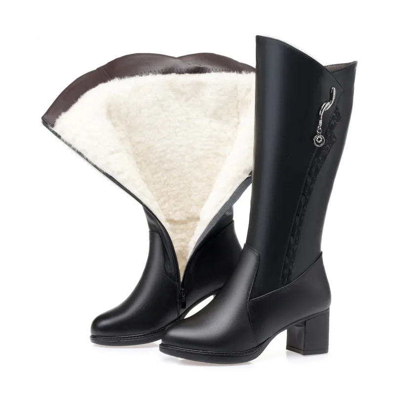 Зимние женские ботинки из натуральной кожи, новая шерстяная теплая ...
