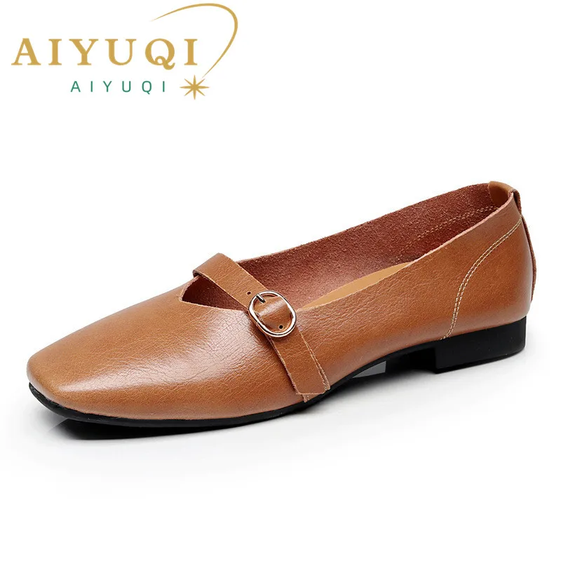 Женские туфли AIYUQI из натуральной кожи, на плоской подошве, удобн...