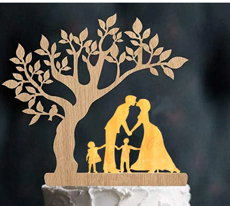 Свадебный торт Топпер-мама и папа с 2 детей девочки семья годовщина торт Топпер жениха и невесты стиль дерева