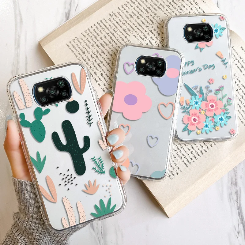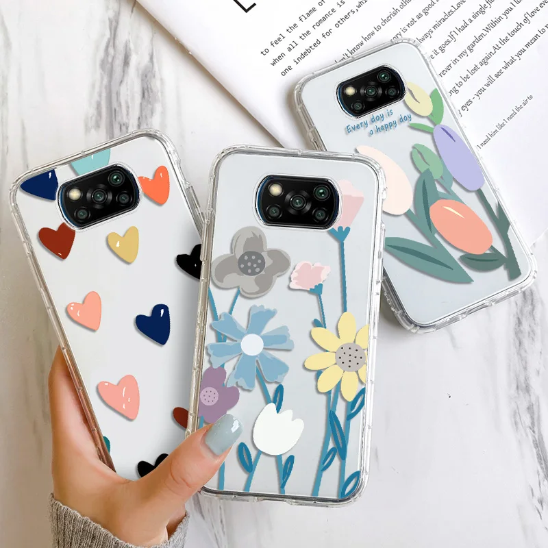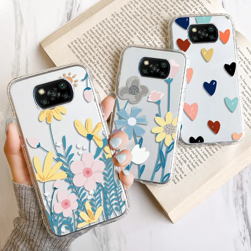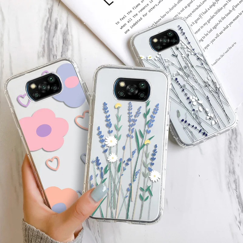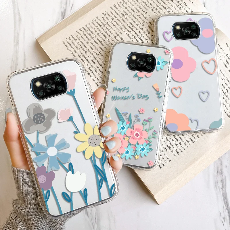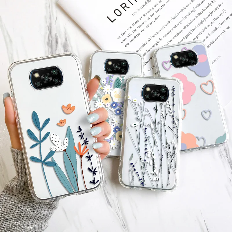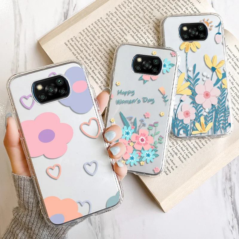 Чехол Poco X3 Pro, силиконовый чехол с цветочным принтом на Xaio mi...