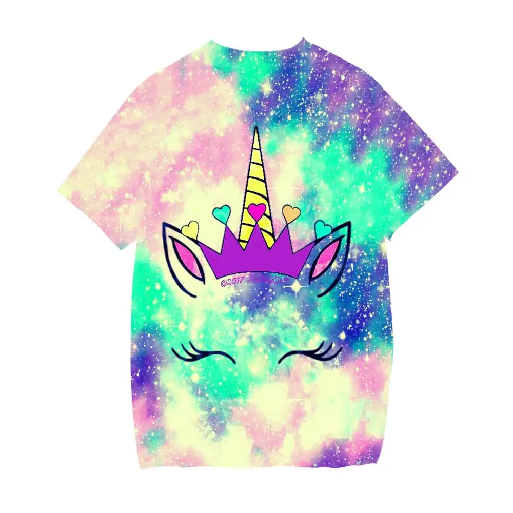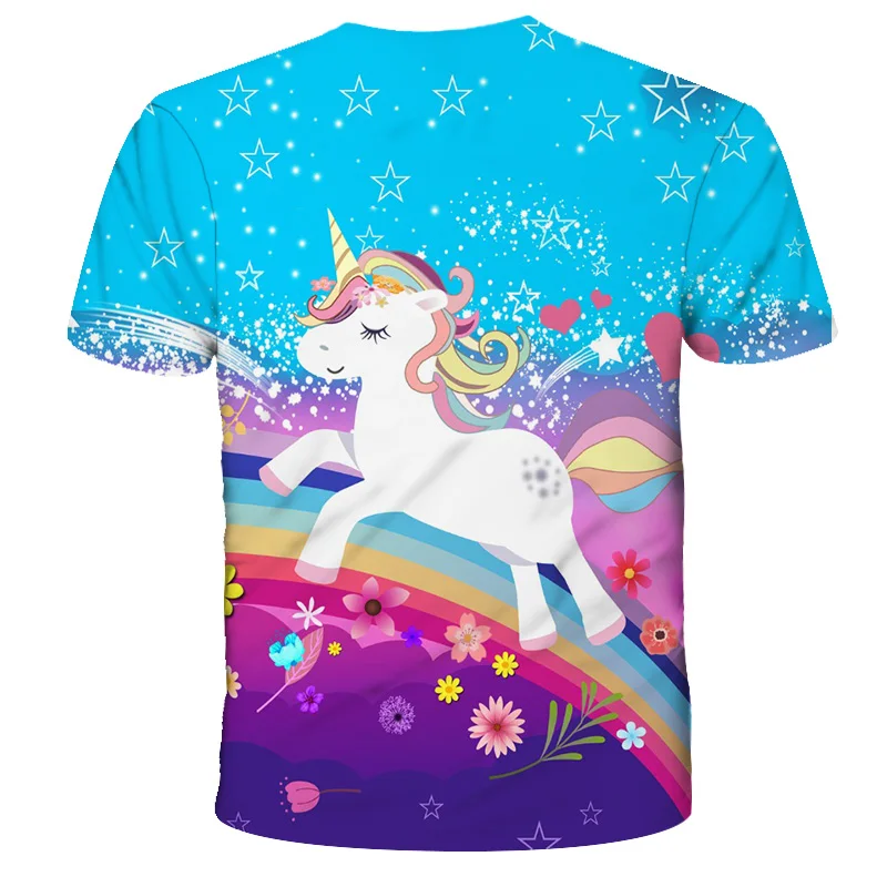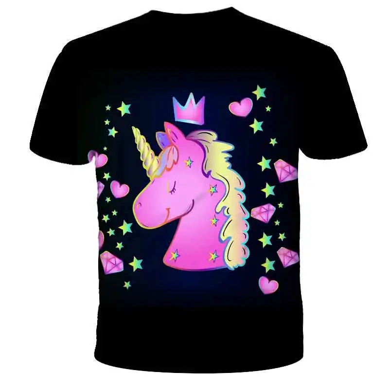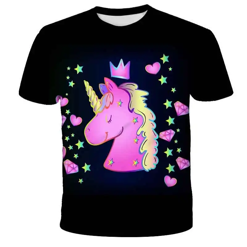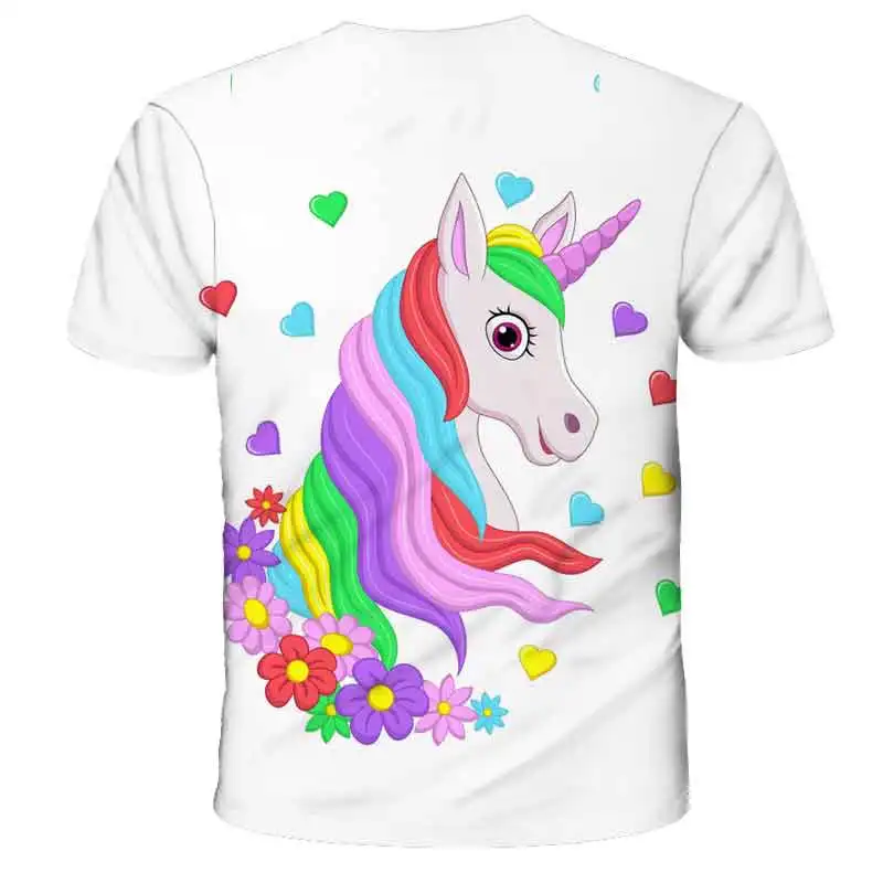 Футболка для девочек с 3D принтом единорога, милая розовая футболка с единорогом, летняя футболка для девочек, топы, детская одежда с мультяшным рисунком, повседневные футболки для подростков