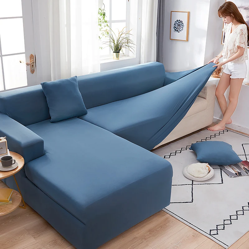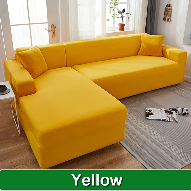 Однотонный эластичный чехол для дивана, 1234-местный L-образный чехол для углового дивана, чехол для гостиной, эластичный секционный чехол для дивана