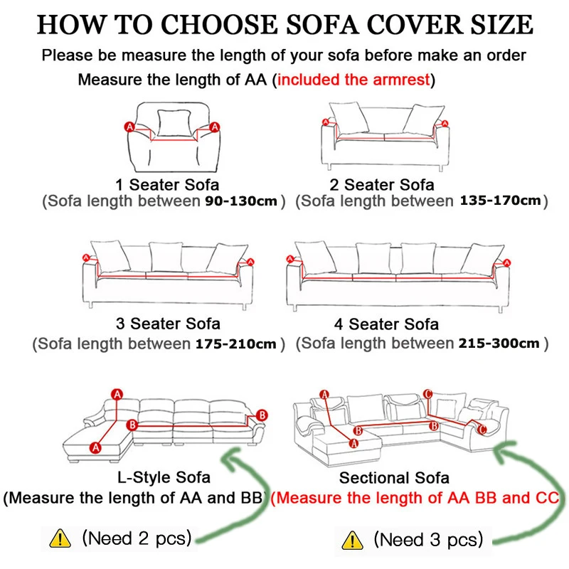 P.S: для угловых чехлов для диванов «L Shape» или секционных чехлов для диванов, вы должны купить2/3Штук.