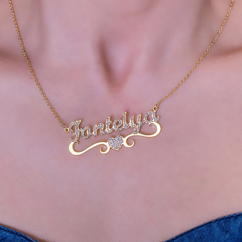 Ожерелье с именем на заказ с сердцем, персонализированная табличка, Золотая нержавеющая сталь, блестящая подвеска, ожерелье для женщин, ювелирные изделия, подарок