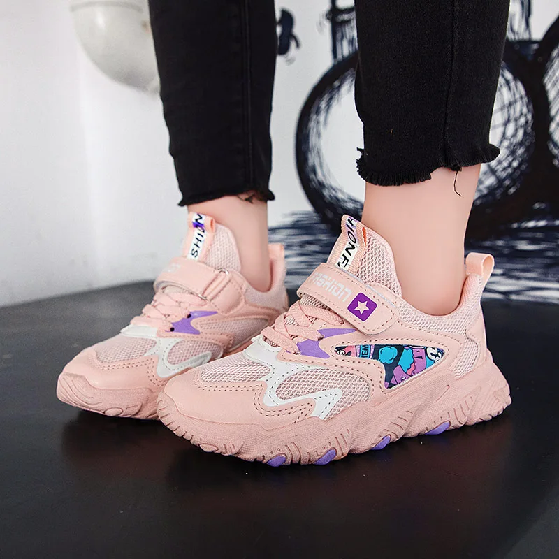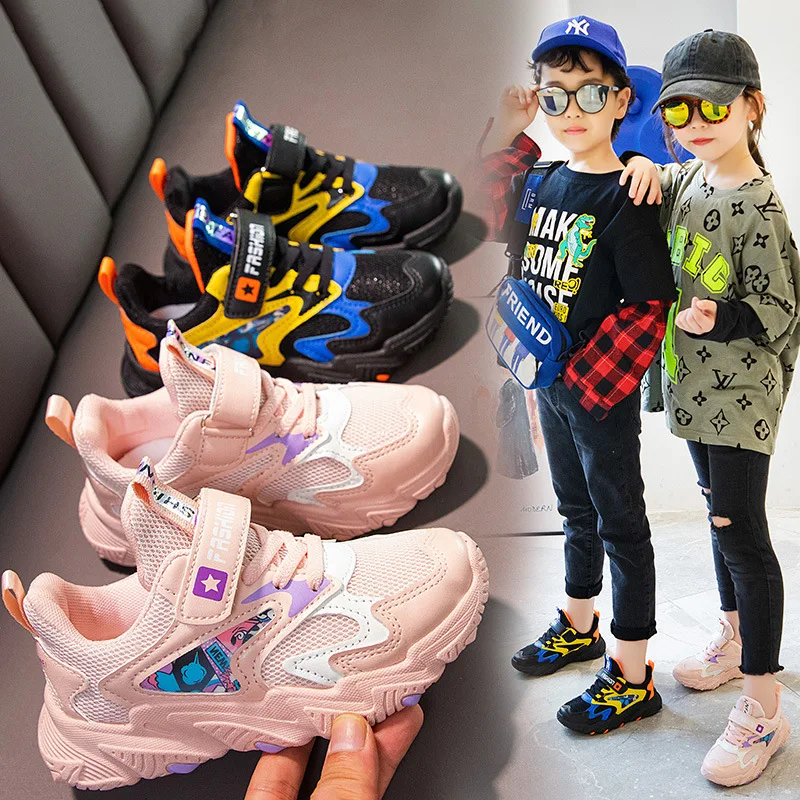 Детские Нескользящие кроссовки для бега, повседневная износостойкая дышащая сетчатая спортивная баскетбольная обувь для мальчиков и девочек, Размеры 26-36