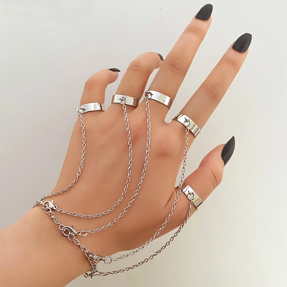 FNIO панк геометрический серебряный цвет браслет-цепочка на запястье для женщин мужчин кольцо Шарм набор пара модные украшения подарки Pulsera Mujer