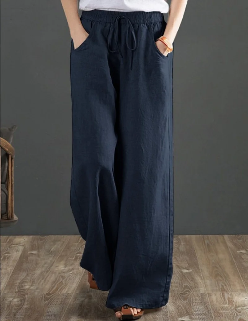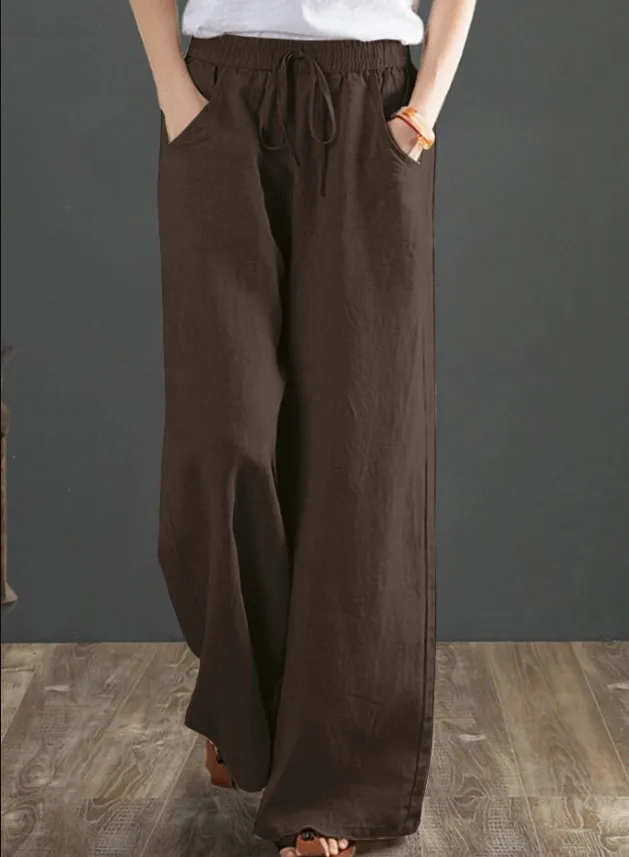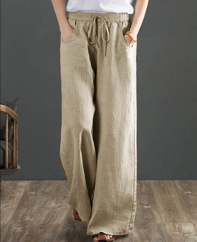 Брюки женские винтажные из хлопка и льна, однотонные свободные штаны с эластичным поясом, с широкими штанинами, длина Лето 2021