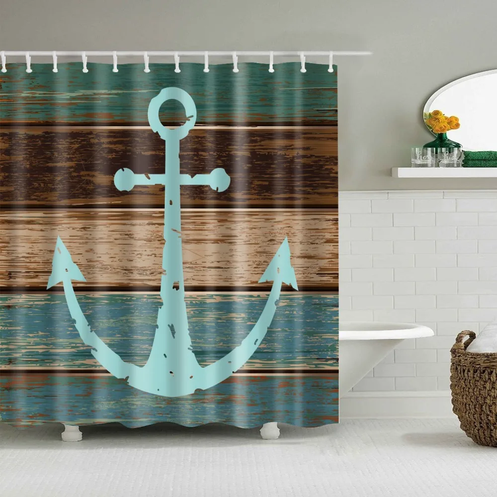 Занавеска для душа с крючками, занавеска для ванной, якорь, осьмино...