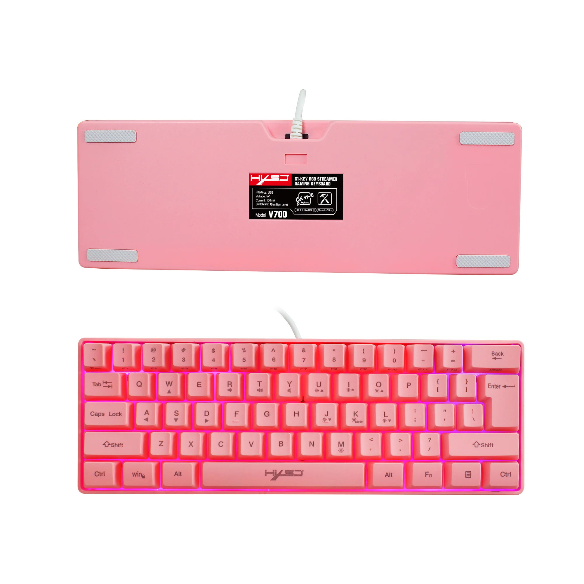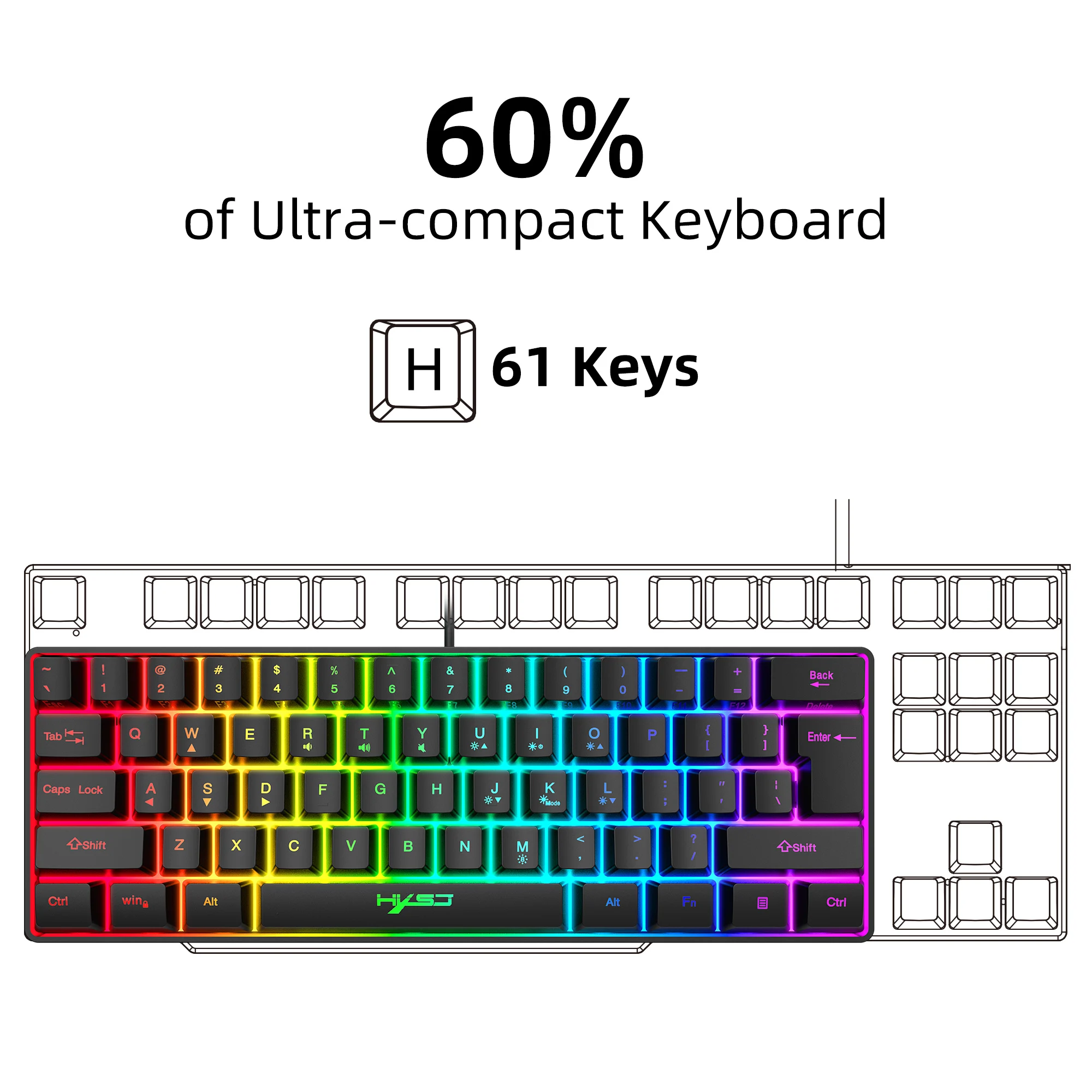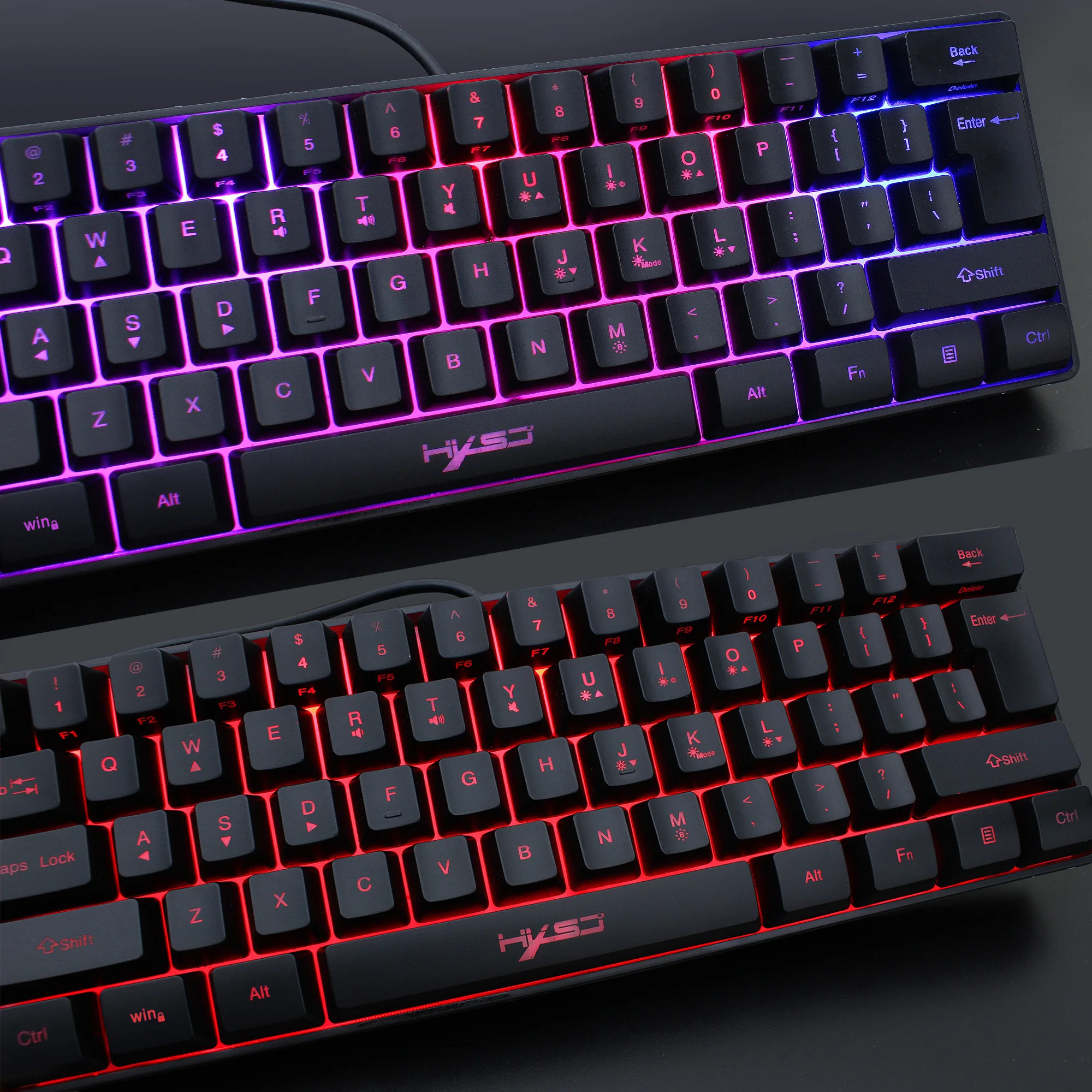 Механическая игровая мини-клавиатура RGB, 61 клавиша, деловая клавиатура с кабелем, портативная для путешествий