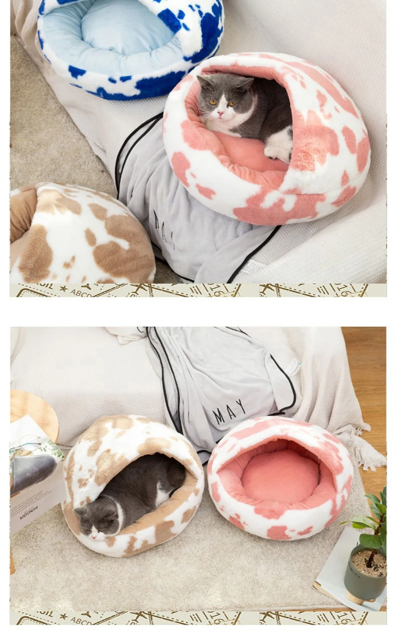 Длинные круглые плюшевые кошечки для домашних животных, теплые кошечки для кошек, мягкие теплые спальные мешки для кошек 2 в 1, Аксессуары для кошек