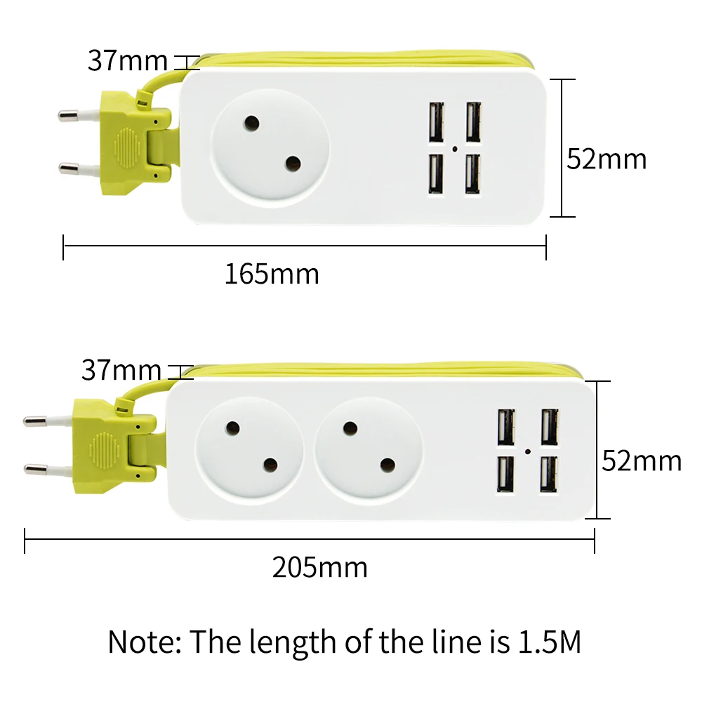 1. 1/2 * Вилки и 4 * usb-порта, поддержка одновременной зарядки нескольких устройств.