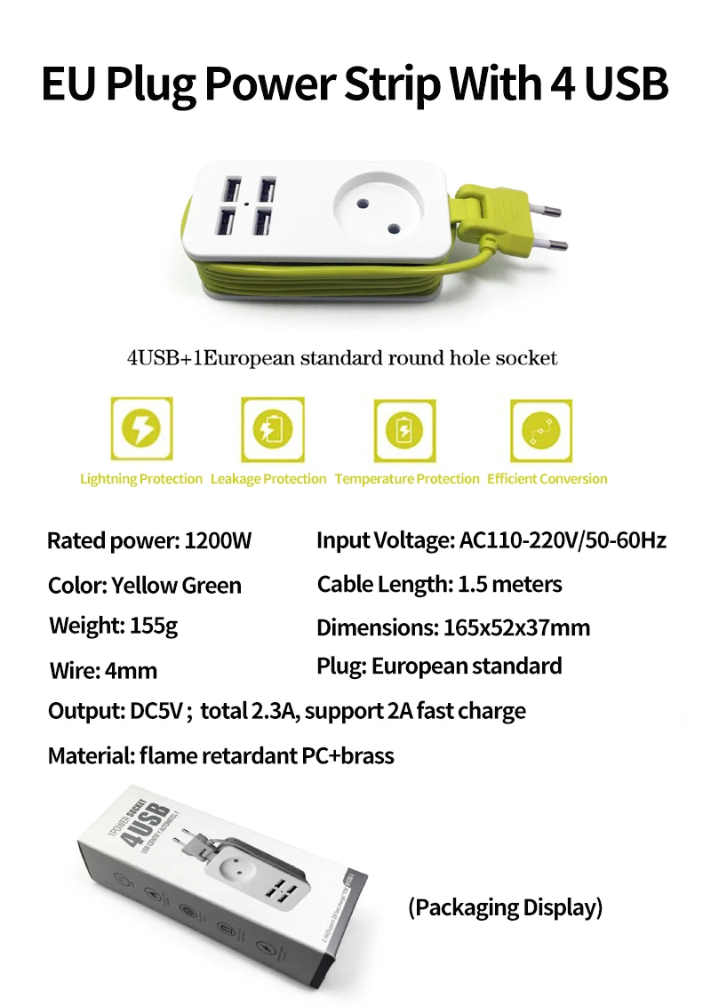 Мощность полосы 1/2 AC Мощность Путешествия адаптер EU Plug 1200W 250V 1,5 m портативных зарядных устройств с несколькими разъем Порты и разъёмы в состоянии 4 USB Порты и разъёмы для мобильных телефонов смартфонов Планшеты