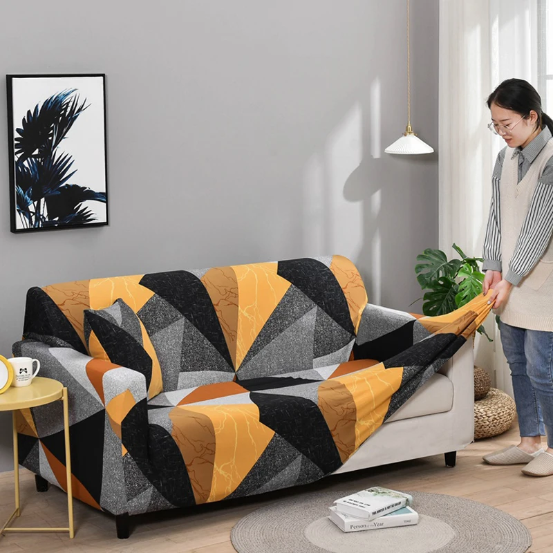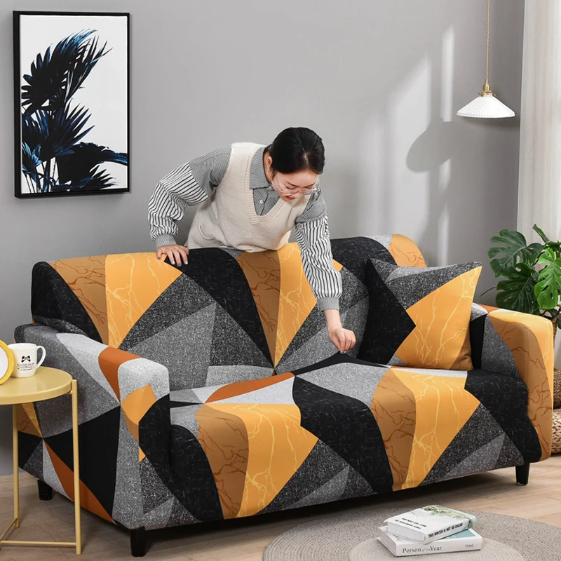 Эластичный чехол для 1234-местного дивана с геометрическим рисунком
