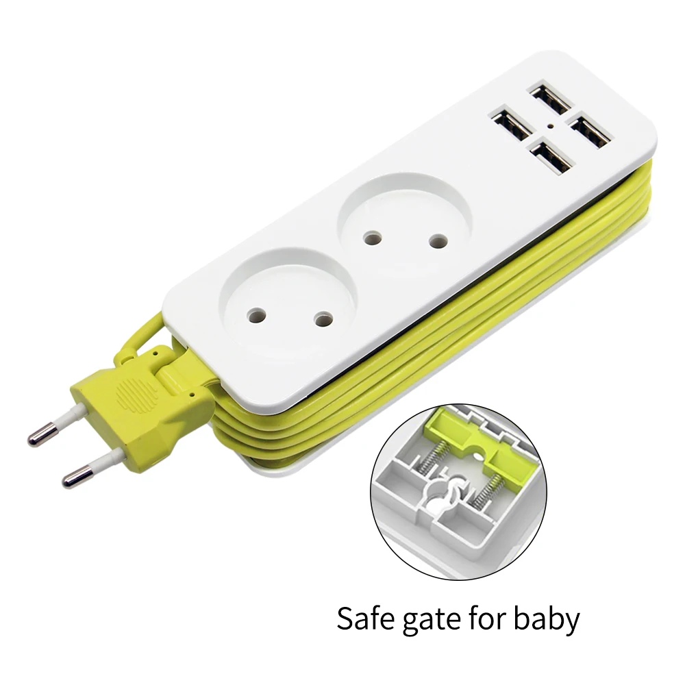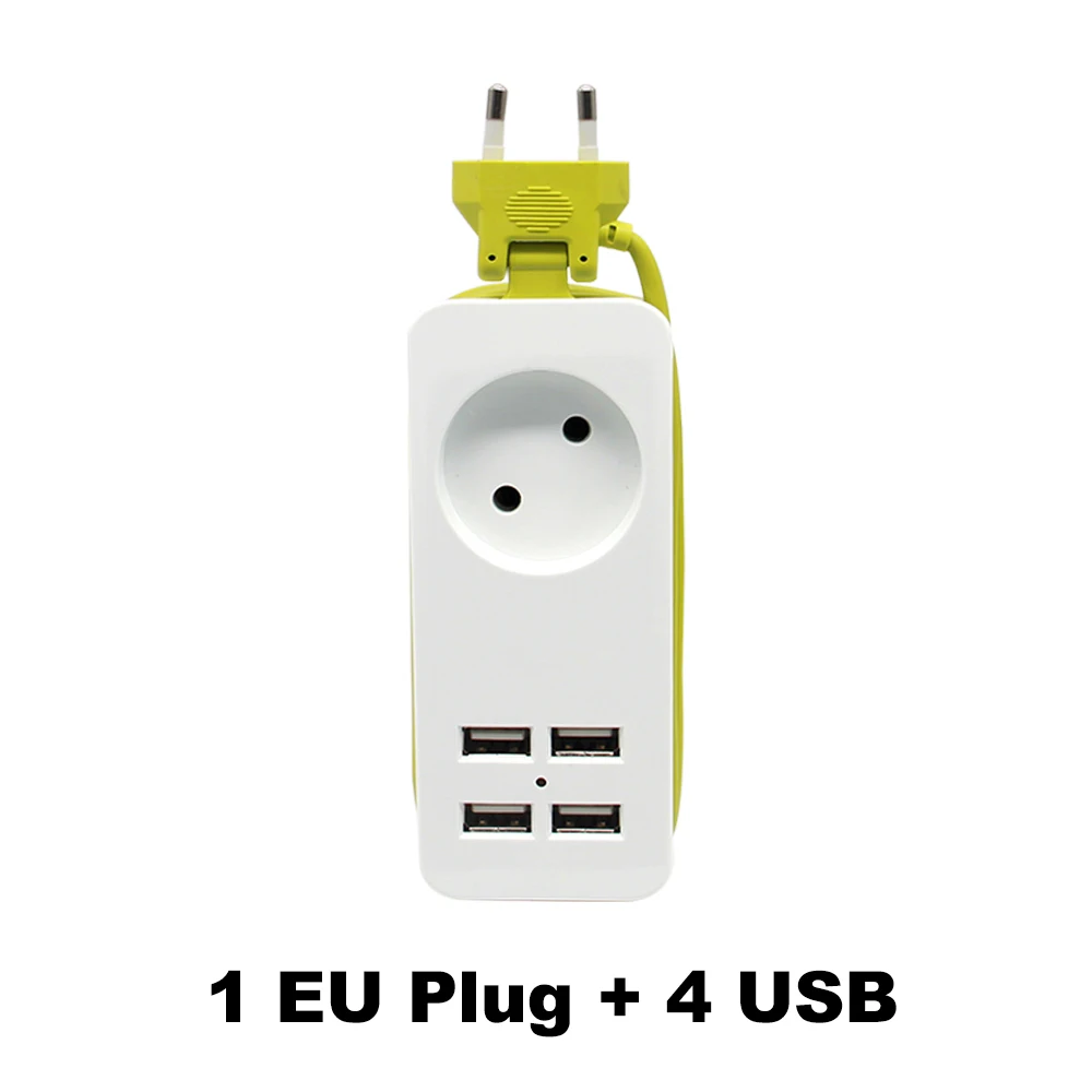 Штепсельная Вилка европейского стандарта для путешествий, портативная удлинительная розетка с 4 USB настенным зарядным устройством, умная настольная розетка
