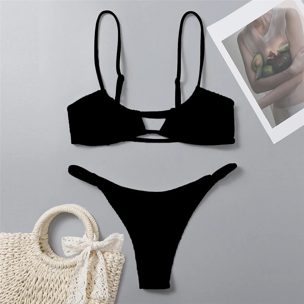 Сексуальный комплект бикини с низкой талией для женщин, новинка 2022, однотонный купальник из двух предметов, Женский Бразильский бикини с открытой спиной, пляжный купальный костюм