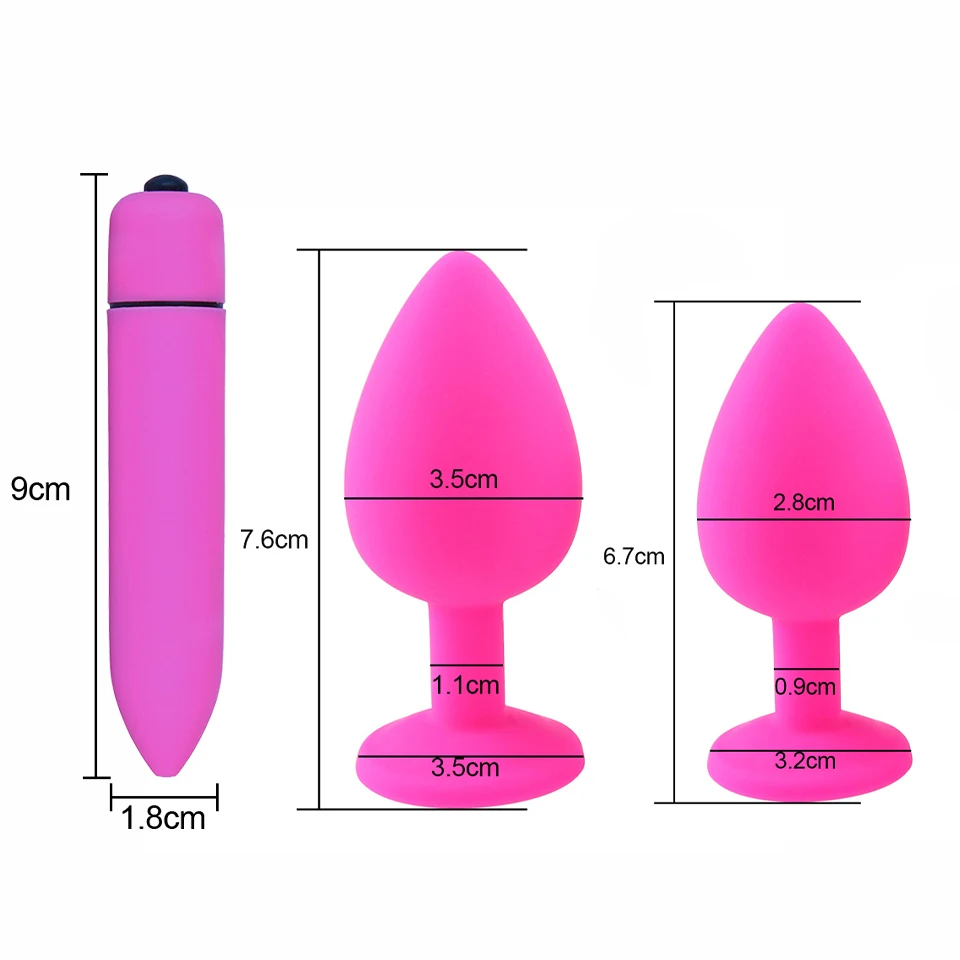 Силиконовые анальные пробки и вибратор, фаллоимитатор с украшением ...