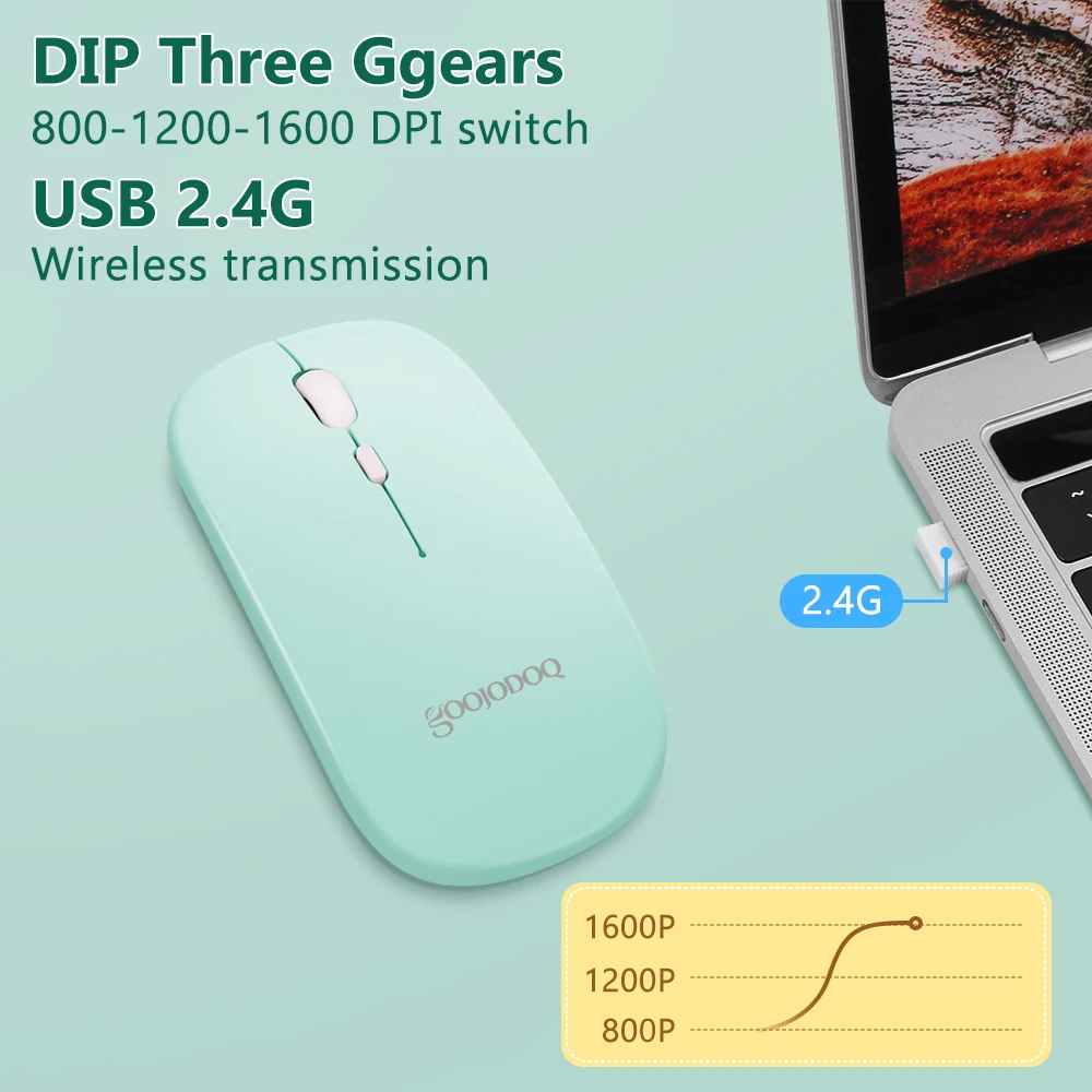 Беспроводная мышь GOOJODOQ с двойным режимом BT 40 24GHz реализует Бесплатные переключатели между двумя устройствами с помощью одной мыши только одним нажатием