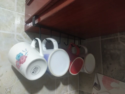 Железная полка для хранения с 6 крючками, металлическая подвесная полка для шкафа, кружек, чашек, органайзер для ванной, кухни, подвесная стойка, держатель