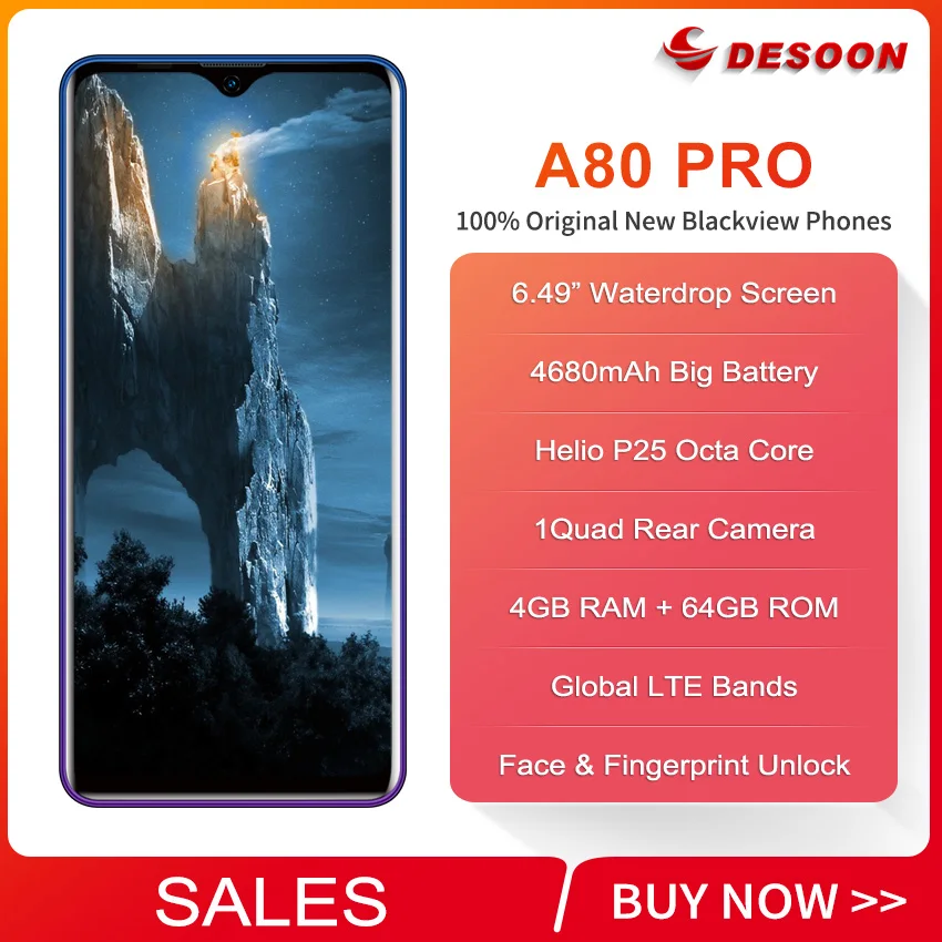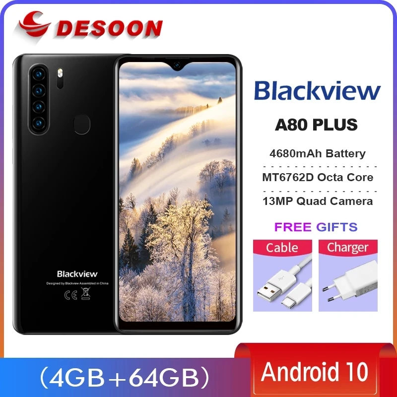Смартфон Blackview A80 Pro, 6,49 дюйма, 4 + 64 ГБ, 4680 мА ч, Android 9,0