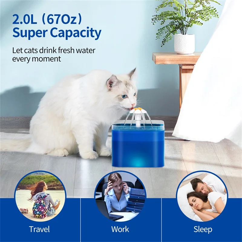 Поилка-фонтанчик для домашних животных, 2 л, с датчиком фильтра