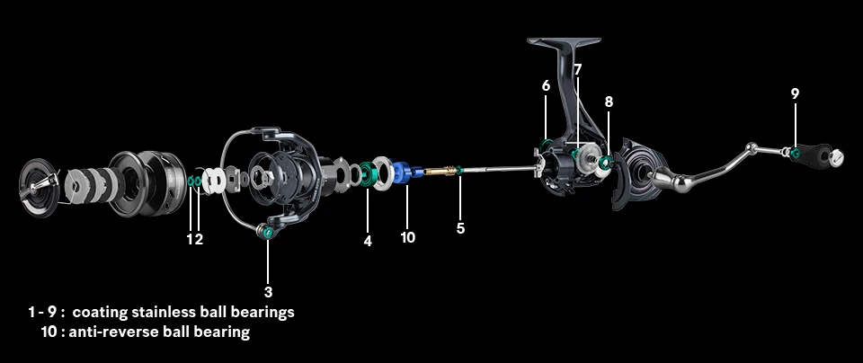 9 + 1 Шариковые подшипники + односторонняя защита от обратного хода обеспечивают плавную работу.