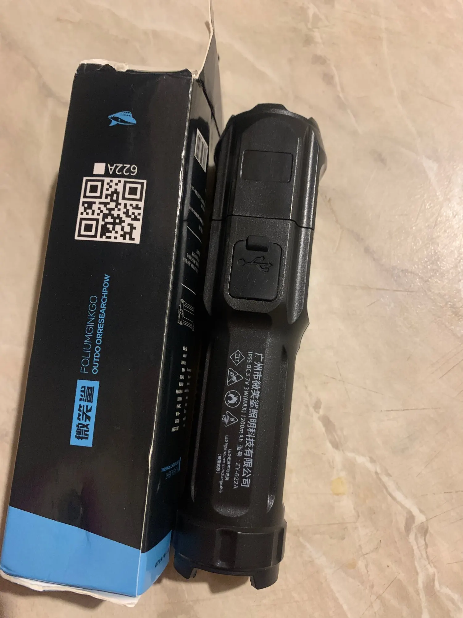 Посылка пришла очень быстро. Светится очень хорошо, но, к сожалению, USB-штекер сломался при попытке зарядки, и фонарик перестал работать