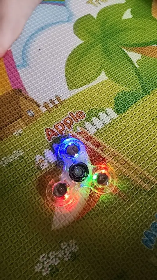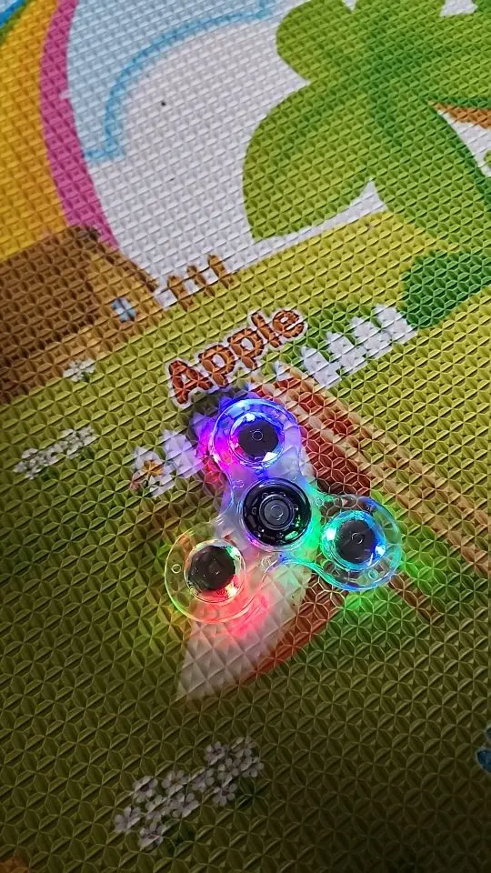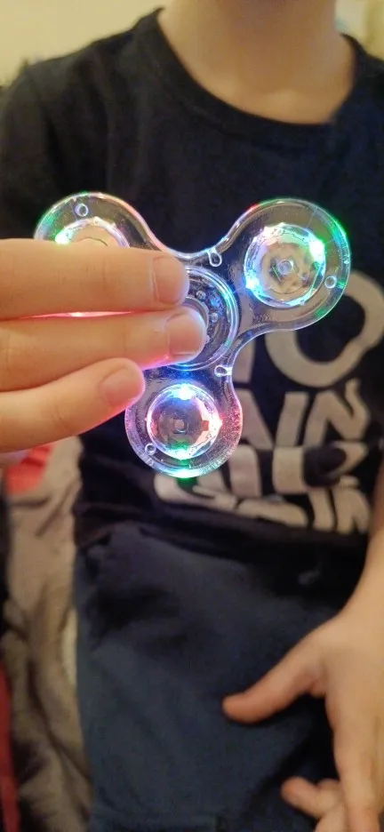 3 режима свечения каждого "луча", подшипник на центральной оси, стандартный размер. Ребёнку понравилось.
