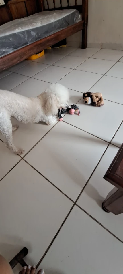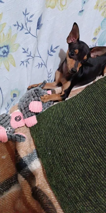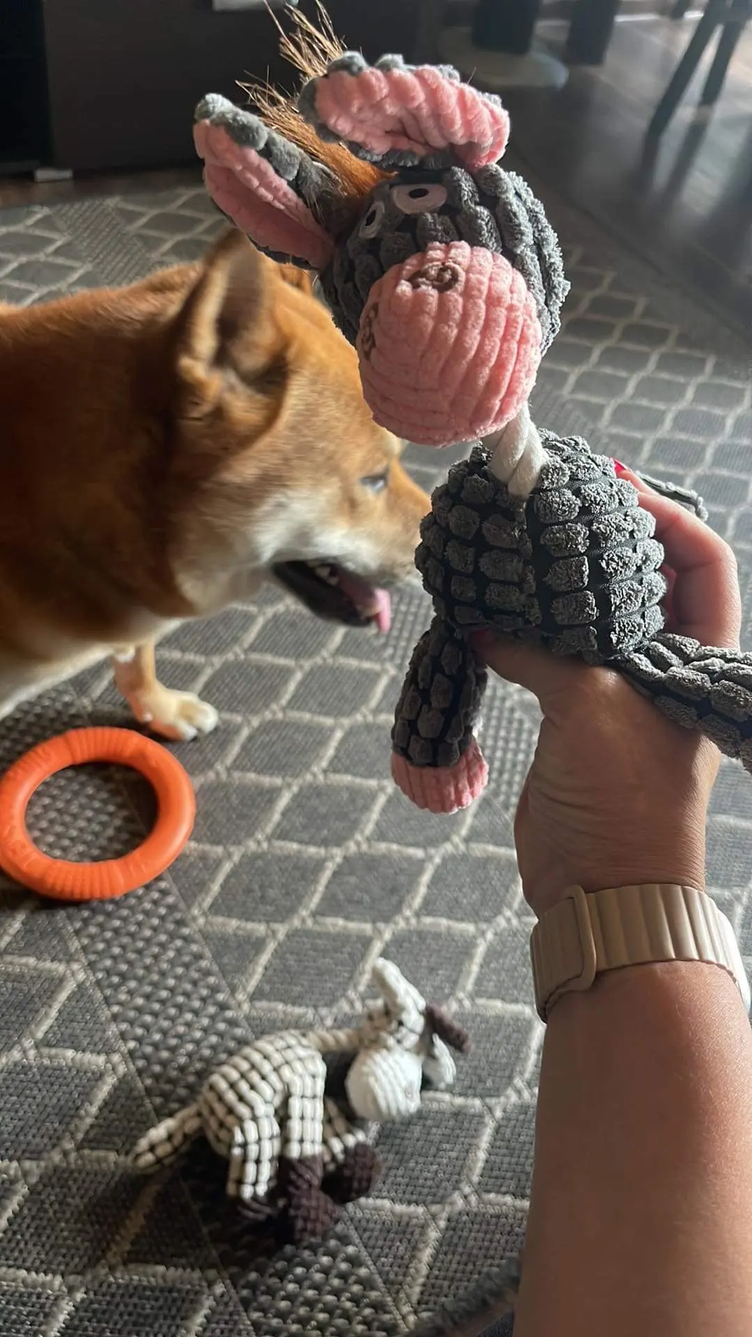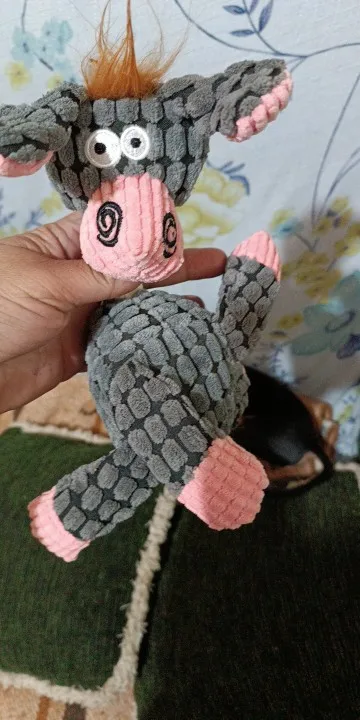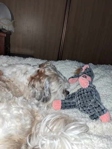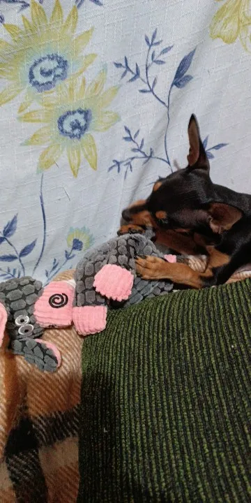 comme sur la photo mon chien tres content sa nouvelle peluche