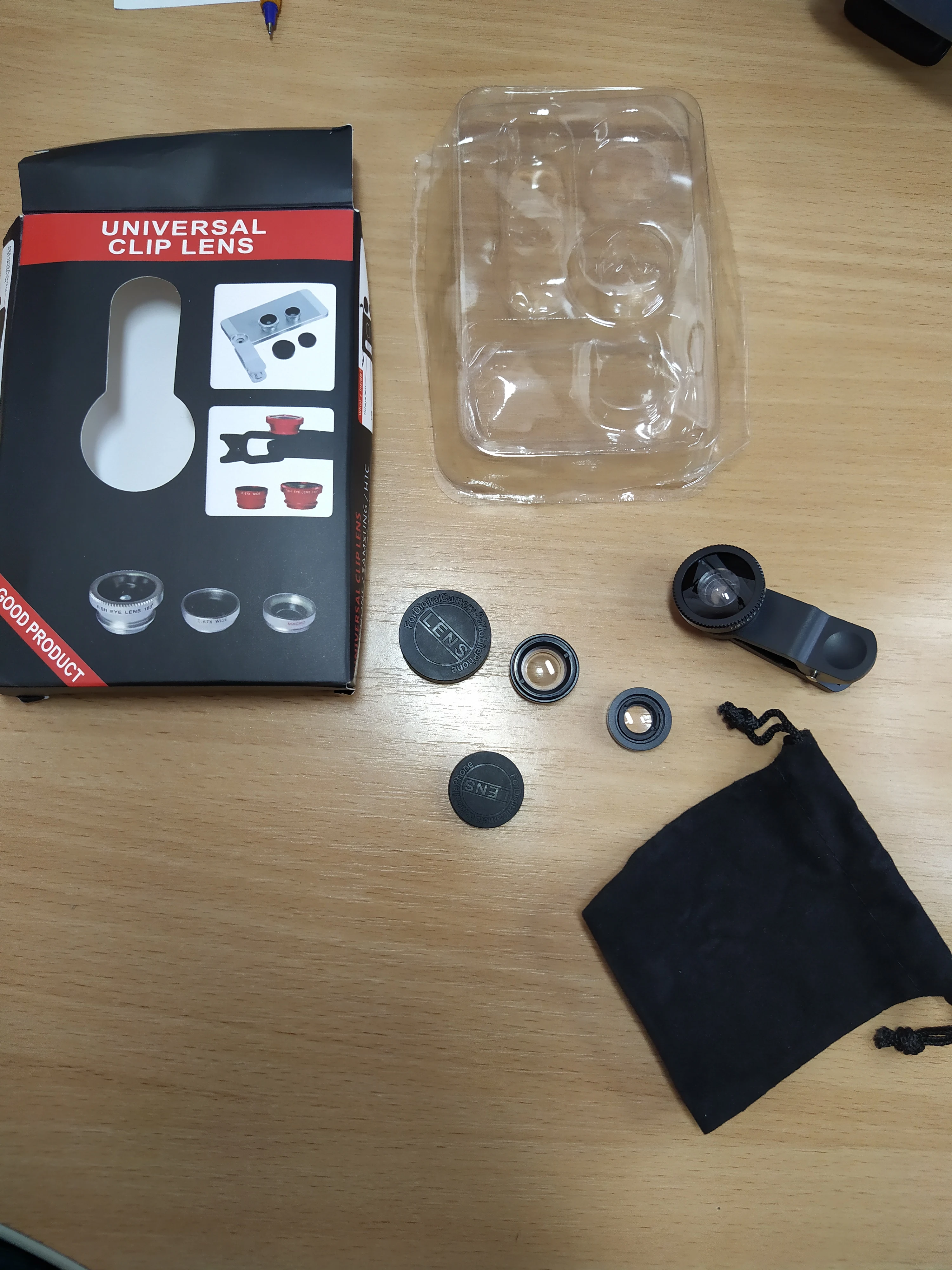 Как реклама в Интернете, так и та, которая идет с продуктом, говорит, что есть 3 линзы: 1 "большой угол", 1 "macro" и 1 "Fish Eye" (см. Прилагаемые фотографии). Тем не менее, «Макрос» и «рыбий глаз» прибыли растаяли (см. Фито) в одном объективе, неразделяемом.