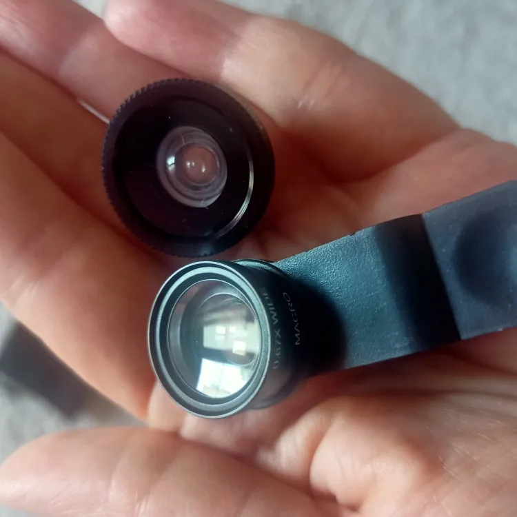 Для телефонов, которые имеют объектив камеры сбоку (а) (не посередине, потому что зажим может быть слишком маленьким для достижения). Содержит 2 цели рыбий глаз и макрос