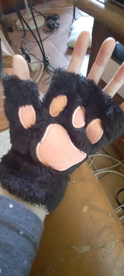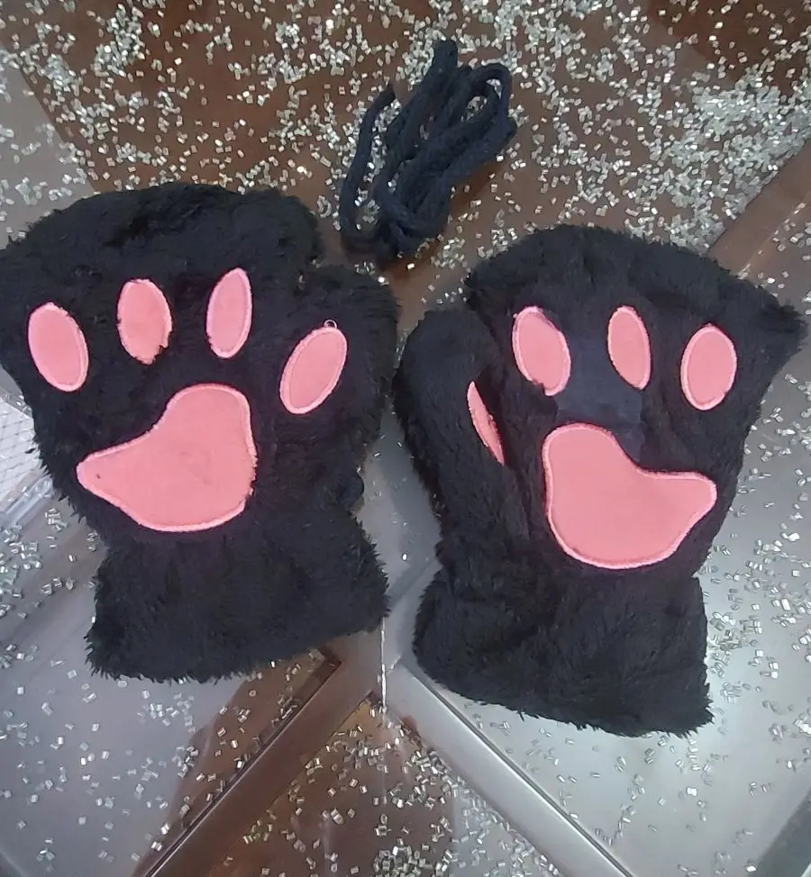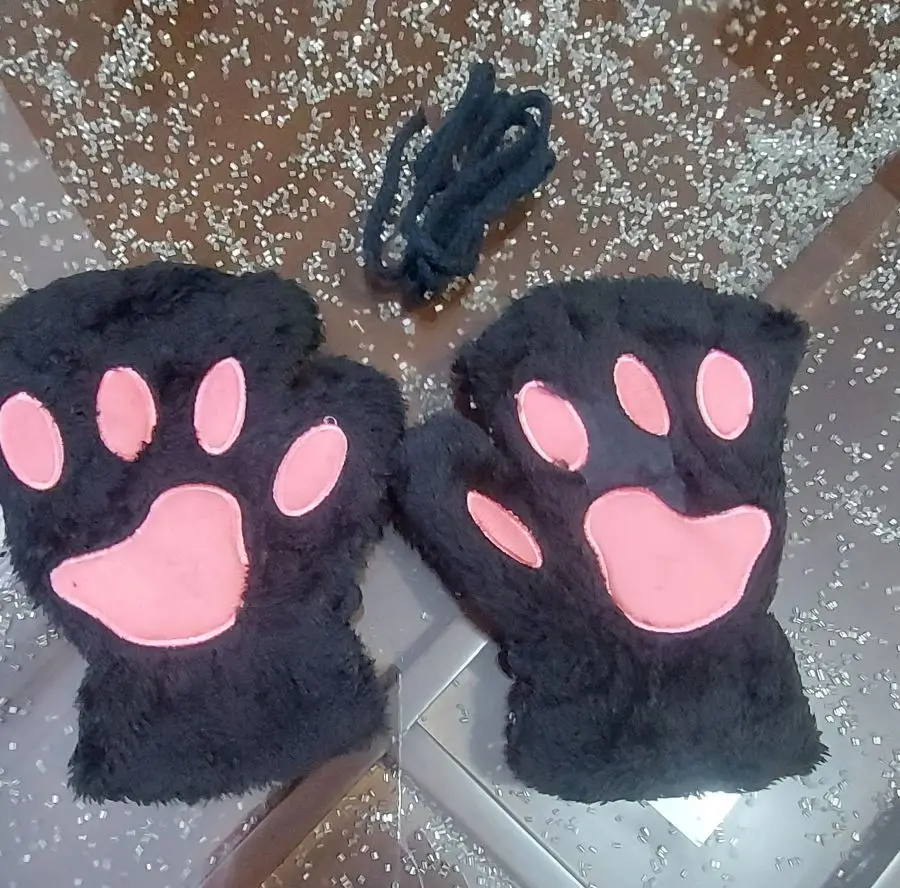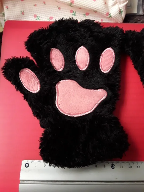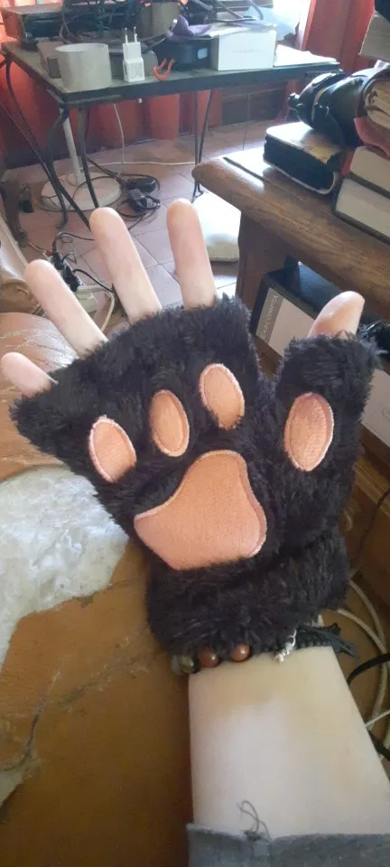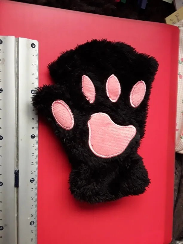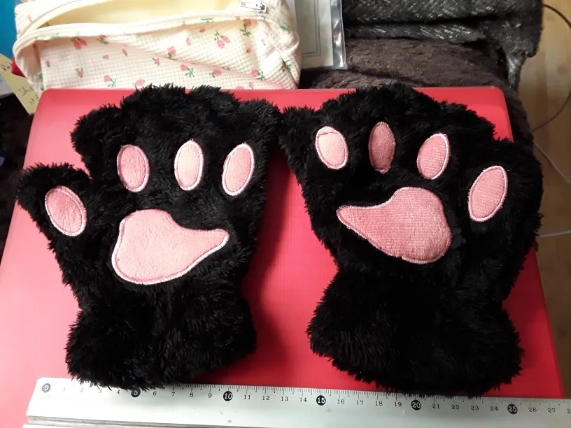 Перчатки с кошачьей лапой; Зимние Утепленные перчатки с милым мультяшным котом для девочек с открытым Пальцем; Пушистые перчатки с медвежьи...
