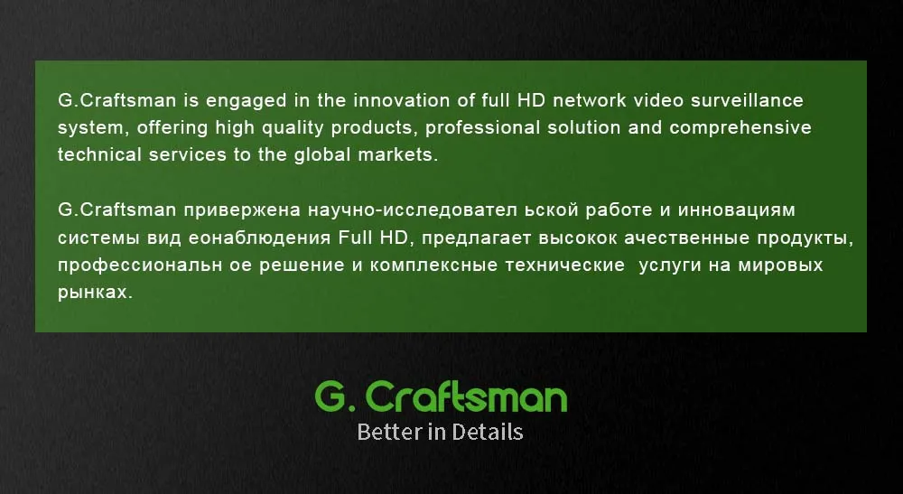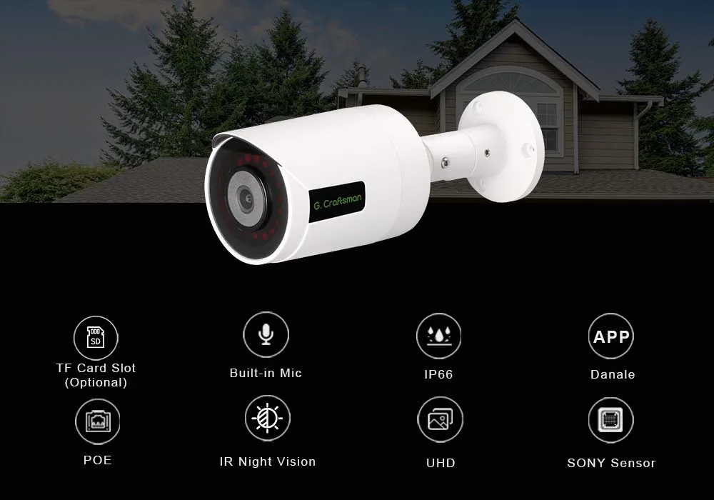 · Помимо частного протокола с G.Craftsman, он также поддерживает ONVIF· Может быть подключен к сетевому видеорегистраторУ, который соответствует стандартам ONVIF, RTSP, сделанным многими другими крупными производителями, такими как HIKVISION, DAHUA, XM и т. д.