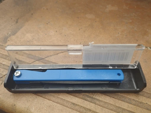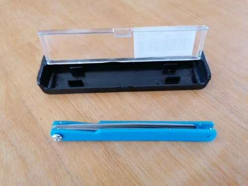 Он хорошо смазан, чтобы не ржаветь и внутри пластиковой коробки для его хранения.