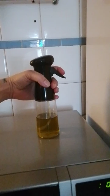 Я абсолютно люблю эту бутылку с распылителем масла! Он работает так хорошо, что позволяет легко светиться на масле во время приготовления пищи.