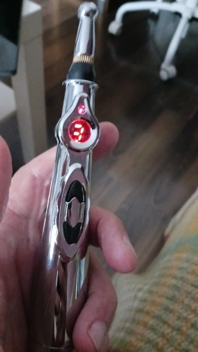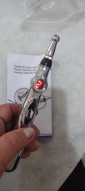 Продукт дает электрическую разрядку, когда вы поддерживаете инструмент для акупункции.