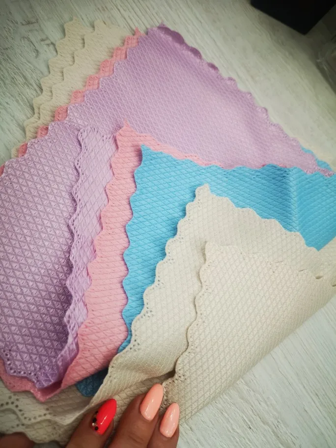 доставка 2 недели. качество хорошее. в наборе 5 тряпок.