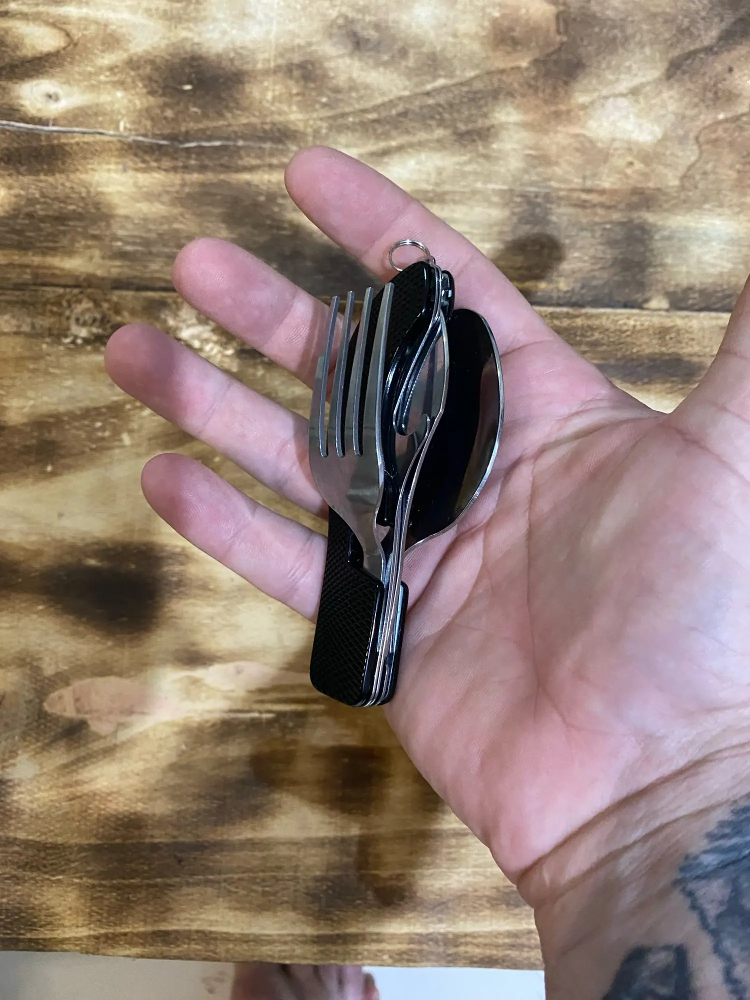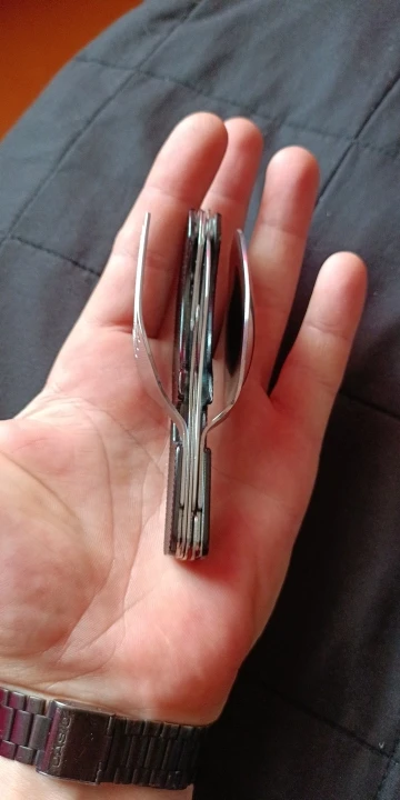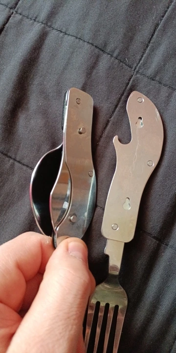Лучшая покупка без сомнения. Я ношу его везде, вы никогда не знаете, когда вам понадобится ложка, вилка или нож. Также очень важно для кемпинга или прогулок. Настоятельно рекомендую.