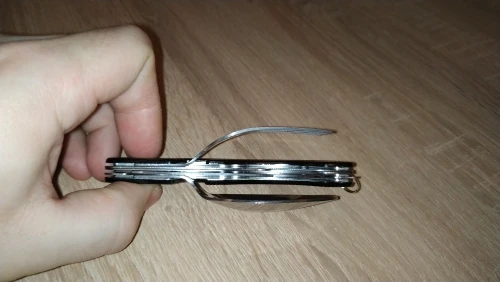 Заказывал повторно. Первый нож отличный. У этого слабые защëлки - открываешь вилку и всë рассыпается. Практическому использованию это вряд ли помешает, но дефект налицо.