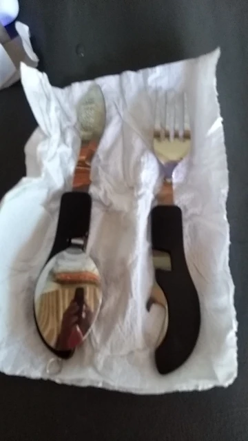 Он прибыл хорошо и работает. Он просто обратил на меня внимание, что они были немного грязными, они не выглядели новыми. Другая вещь состоит в том, что крючок ложки с вилкой легко отделяется, поэтому другая половина может легко упасть.