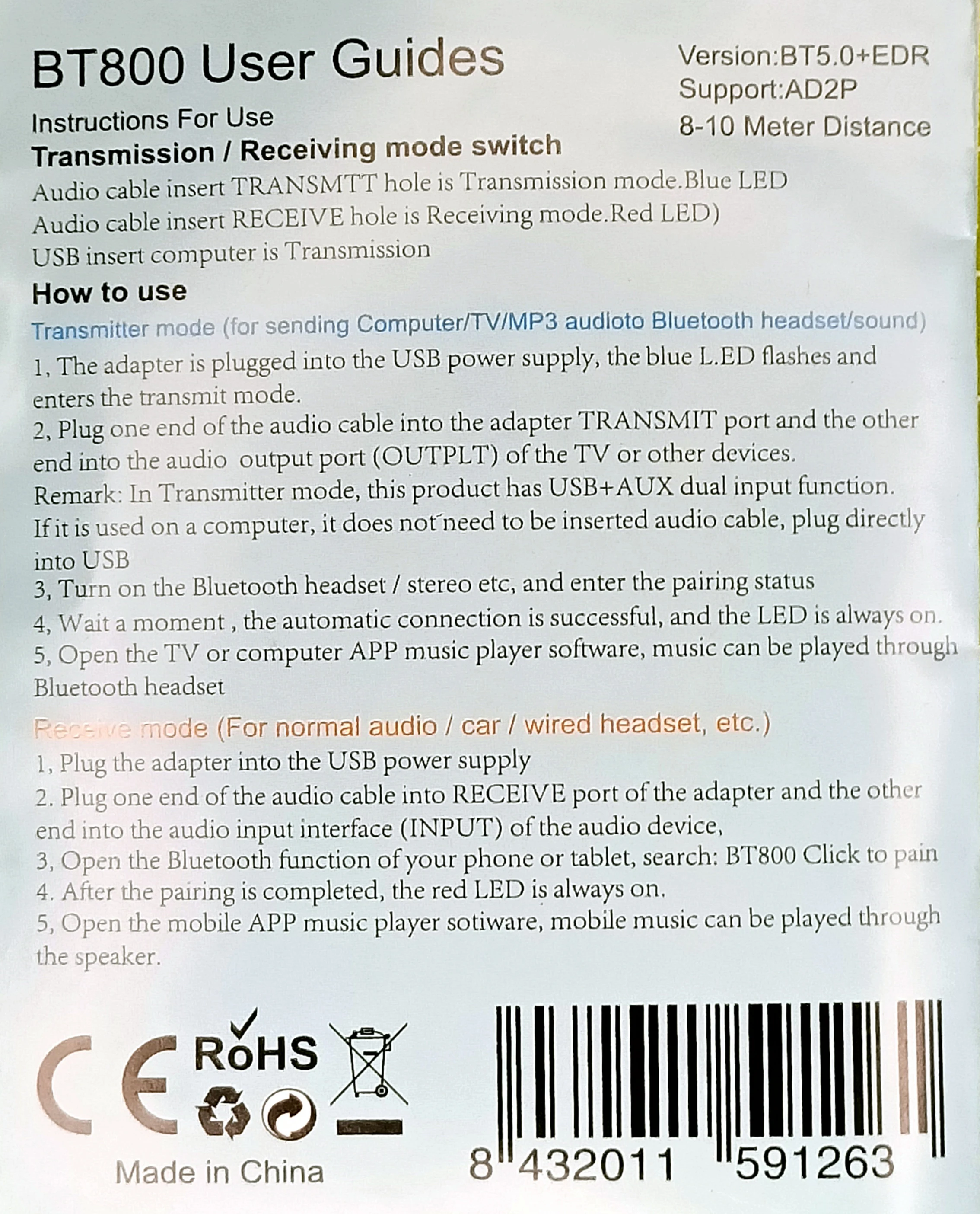 Это второй, который я покупаю, он работает очень хорошо как передатчик, так и приемник, единственным недостатком является то, что когда дело доходит до передачи, он делает это при первом звуковом устройстве Bluetooth, которое я нахожу, и я должен выключить все, кроме того, что я хочу подключить, в противном случае все идет очень хорошо.