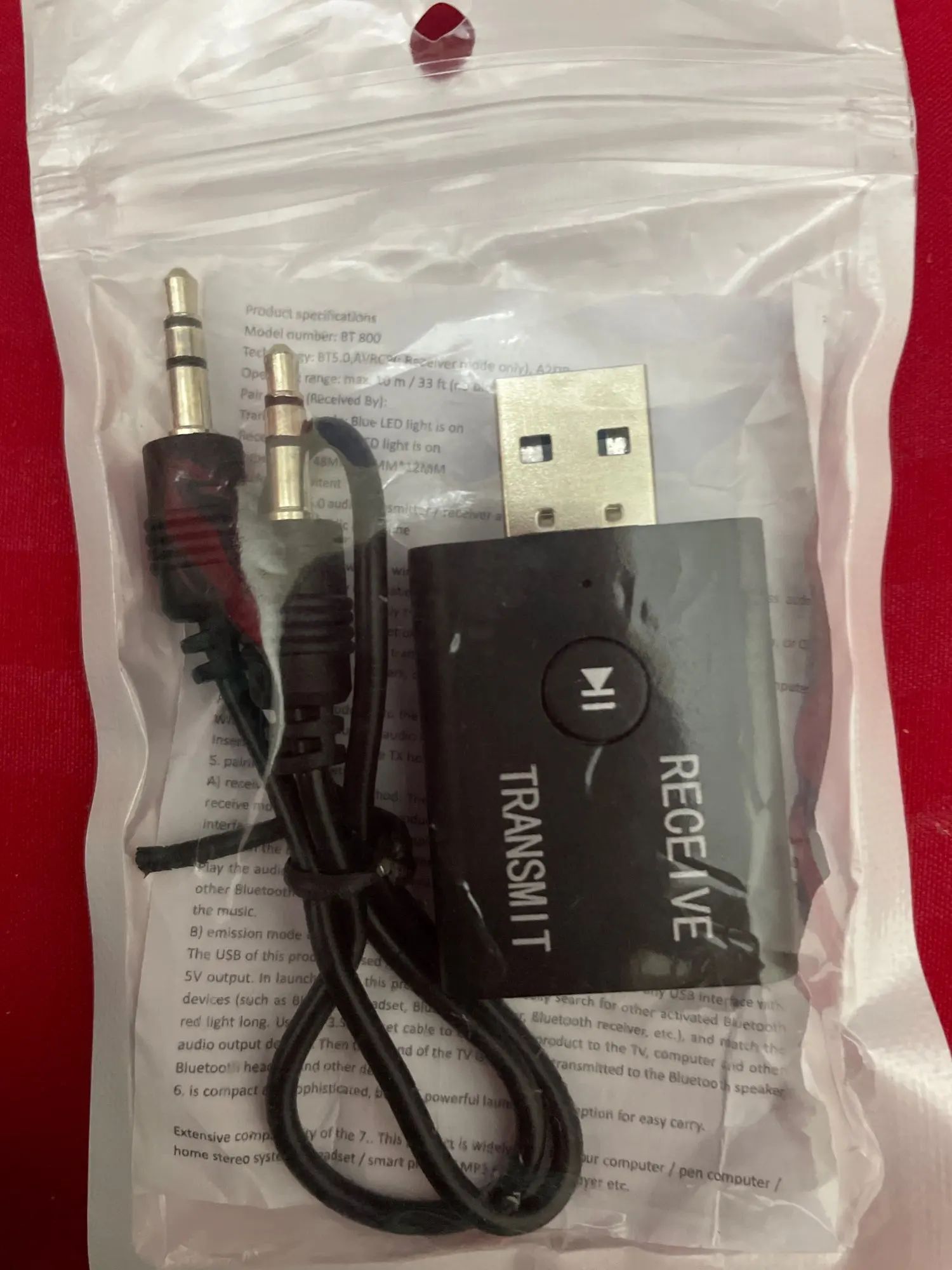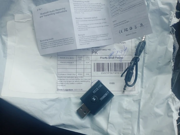 Здравствуйте, заказ сделан из Франции 24/11/2022, получен 08/12/2022. Покупка 3 предметов по 5,96 € (1, 99 €/штука). Поставляется в простой пластиковой упаковке с 2 другими продуктами, без защитной пузырьков. Нет связи с продавцом. Еще не проверено. Покупка аудио адаптера bluetooth USB передатчик/приемник для телевизора. Спасибо продавцу Digitaling Store и платформе AliExpress за продажу недорогих товаров.