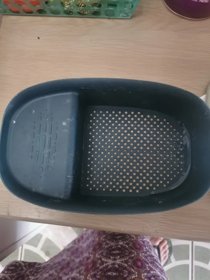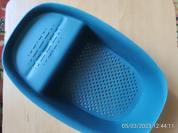 Я был приятно удивлен этим кухонным аксессуаром. Я не мог положить его в посудомоечную машину, потому что он не зацепился. Я положил его в тени для век, и это было прекрасно. Спасибо за быструю доставку.