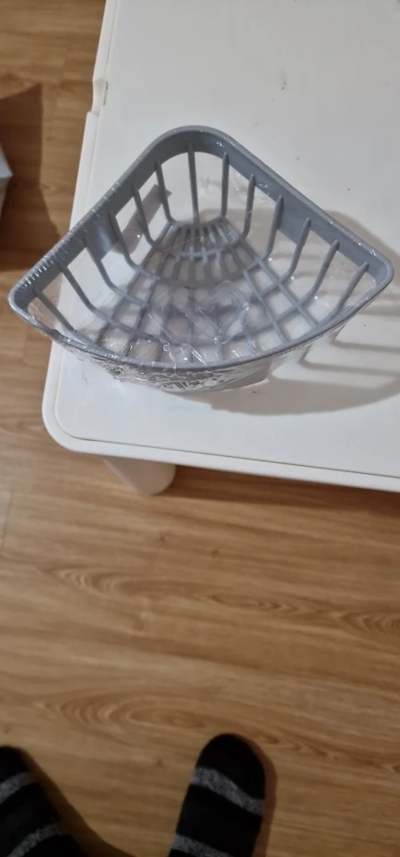 Кажется довольно твердым. И пластик хорош, потому что он не испортится с водой. Также он может удерживать больший вес, потому что он должен быть в углу. Пока что я доволен товаром
