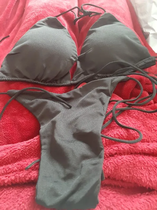 купальник здоровский, но я не угадала с размером. На грудь 3 взяла М, маловат. А трусики шикарно. Плавать не получится, если просто загорать, то огонь. Спасибо продавцу за быструю доставку