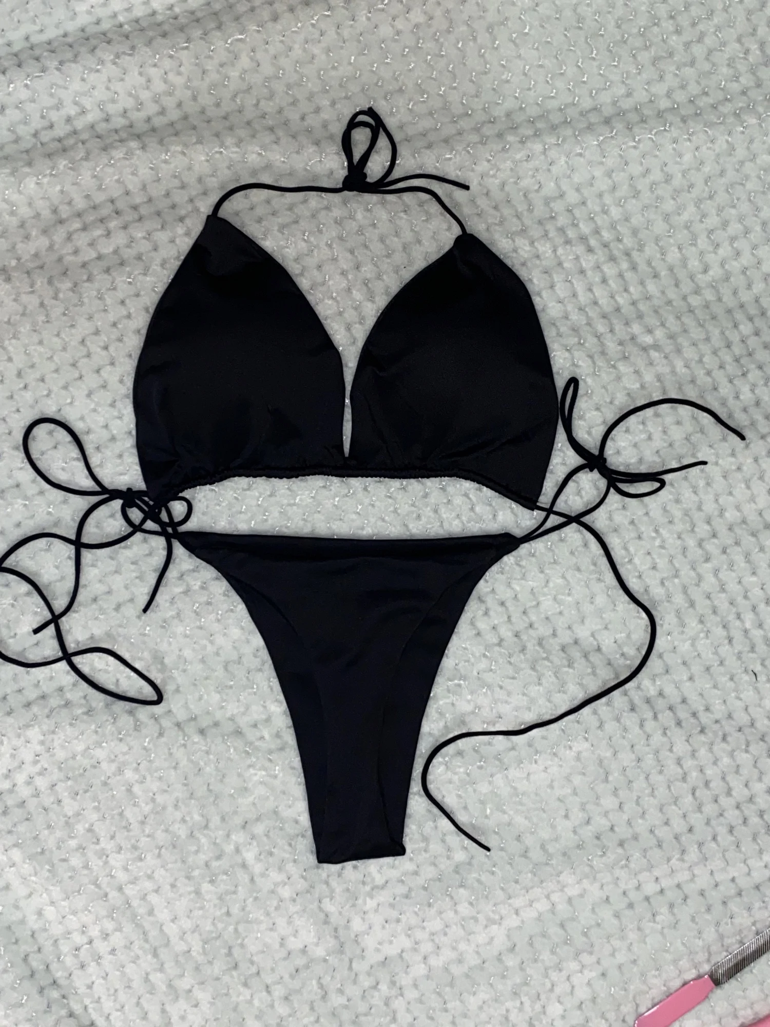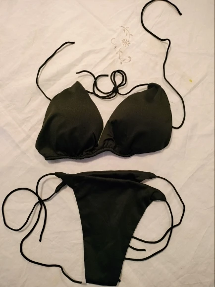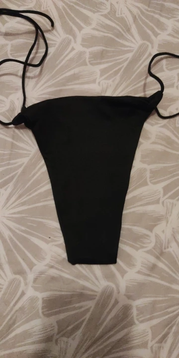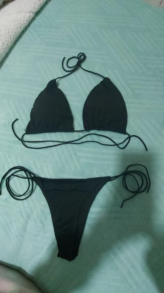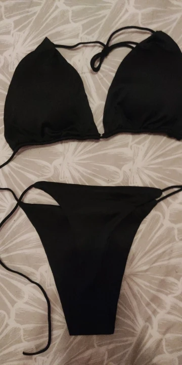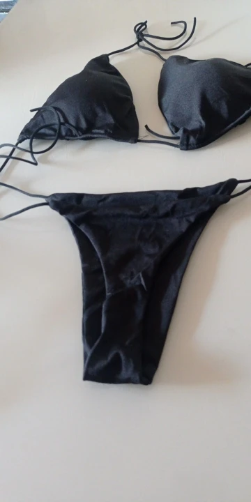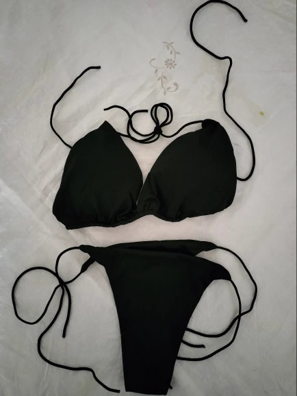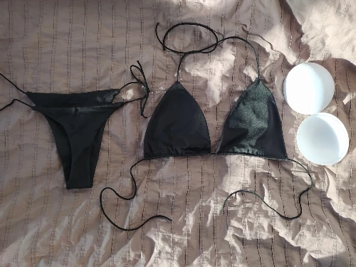 Купальник не самого лучшего качества. Трусы еле-еле прикрывают интимные места, узкие очень. Лифчик лучше немного, но всё-равно плохо фиксируют грудь. Верёвочки-завязки очень тоненькие. Такое себе удовольствие. Одеть и просто сфотографироваться в купальнике можно.