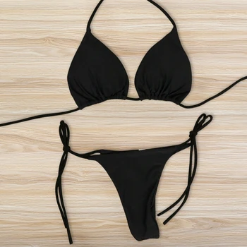 Сексуальный купальник бикини с завязками на шее, Женский раздельный Регулируемый купальник