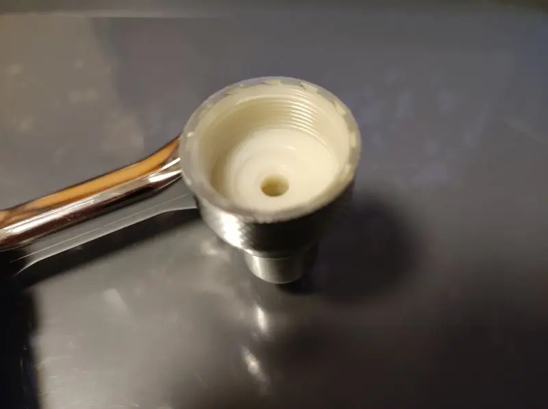 он из пластика. при подачи воды через него регулируемая часть выскакивает из разъёма..