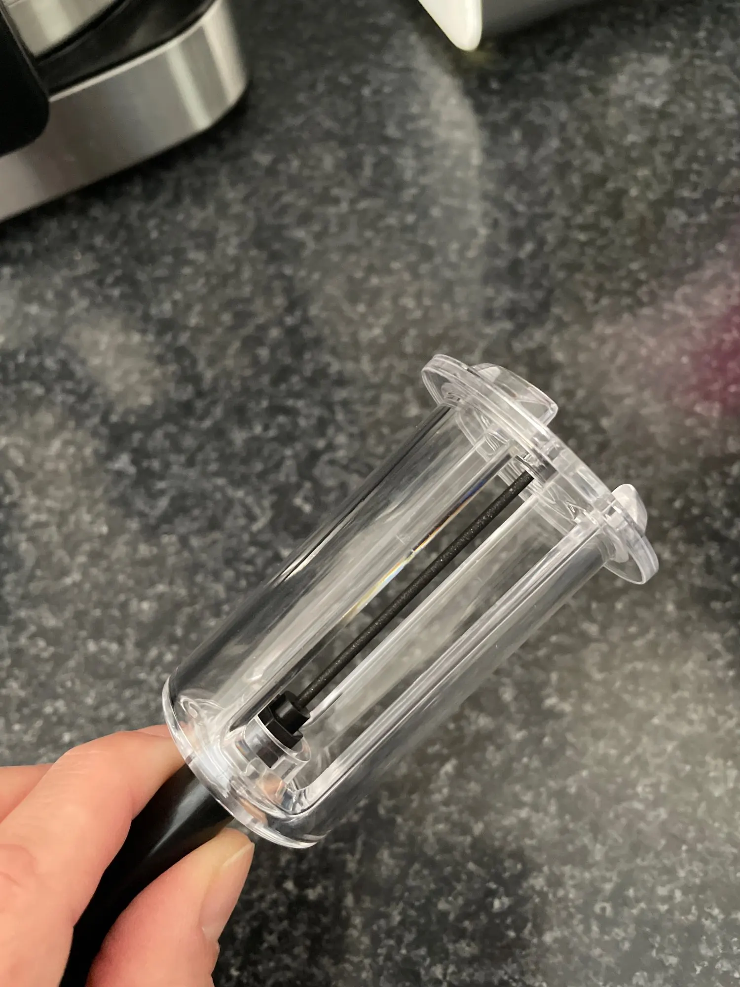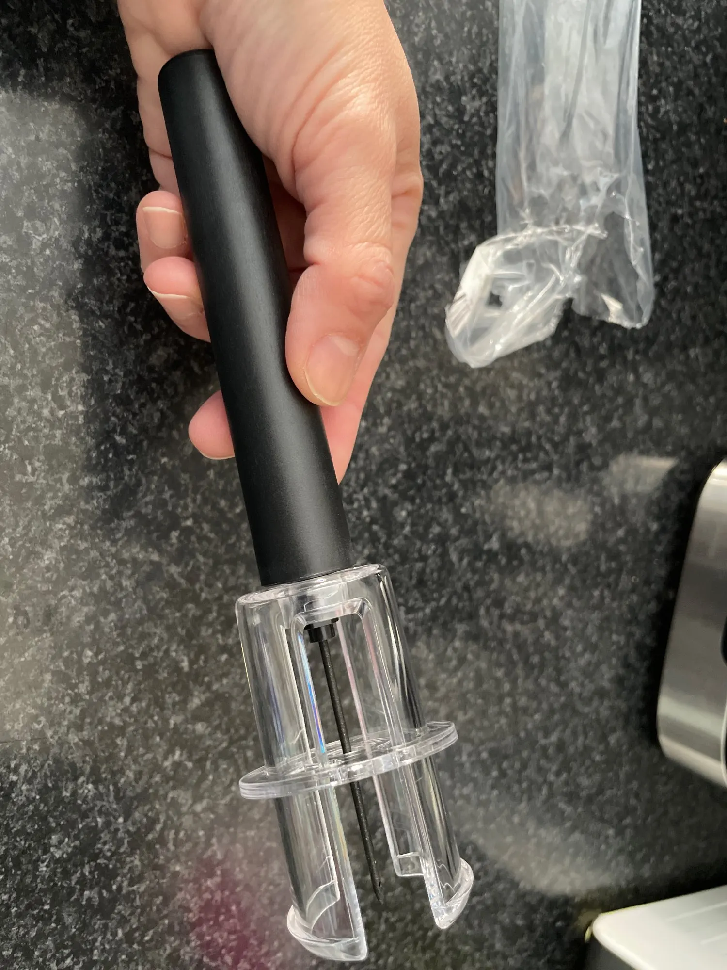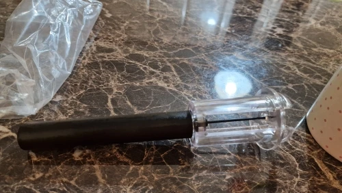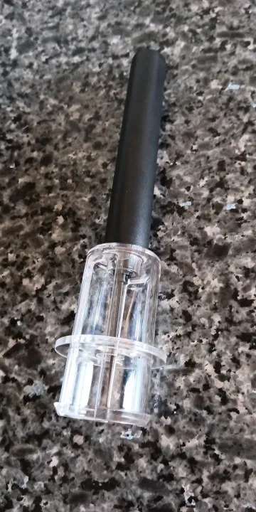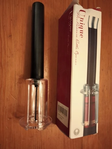 Работает отлично! Прямо на очень старых вин с рассыпной пробкой гигантский помощник. К сожалению, пахнет воздушный насос немного после умягчителя (?), если вы насосы. Я думаю, что это происходит от уплотнительных колец и надеюсь, что это вер летит быстро.