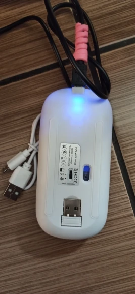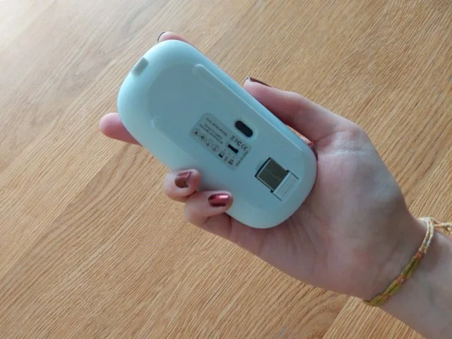 У моего компьютера нет bluetooth. Но вставляя USB, который приносит мышь в основание в USB-порт компьютера и размещая положение вкладки, которая находится в основании мыши в иконке USB, он начал работать без проблем. Он очень мягкий в использовании. Вам не нужно сильно нажимать на кнопки мыши или колесо. На данный момент я очень доволен покупкой.